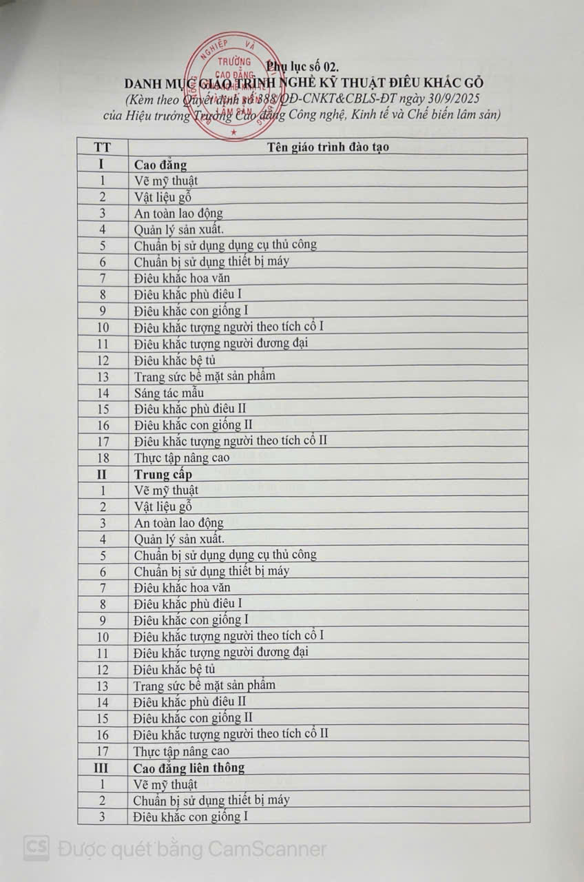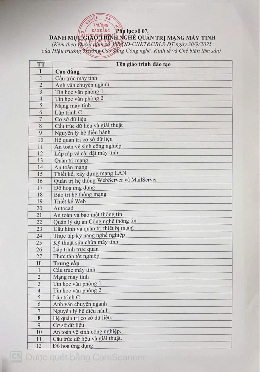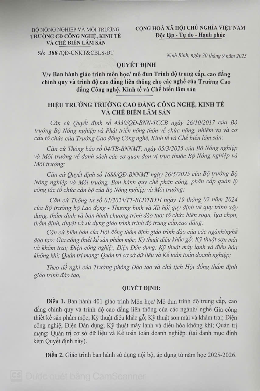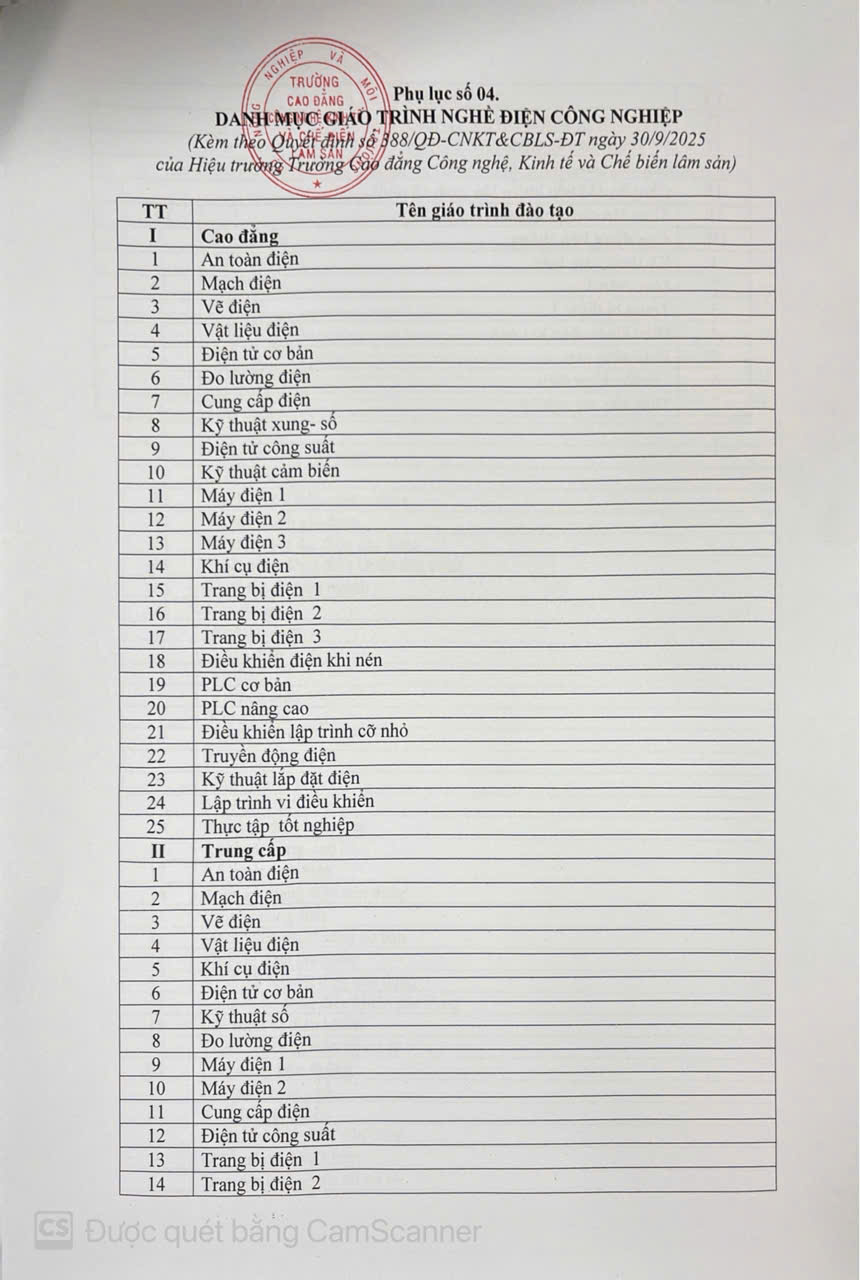 Quyết định sử dụng chương trình đào tạo trình độ trung cấp, cao đẳng và cao đẳng liên thông năm 2025