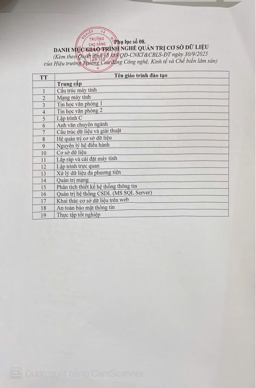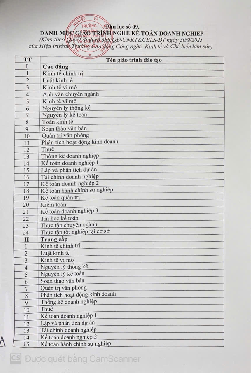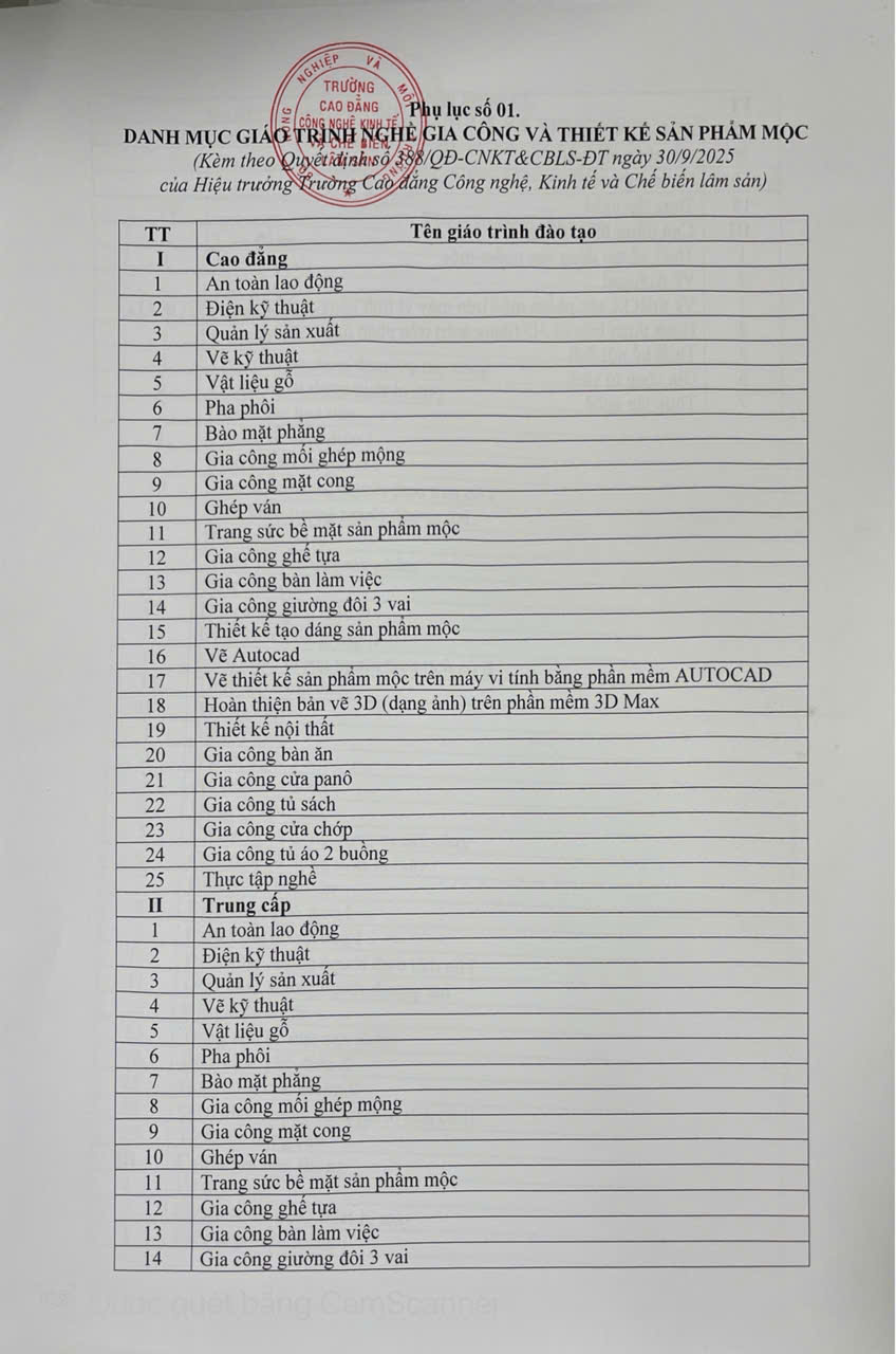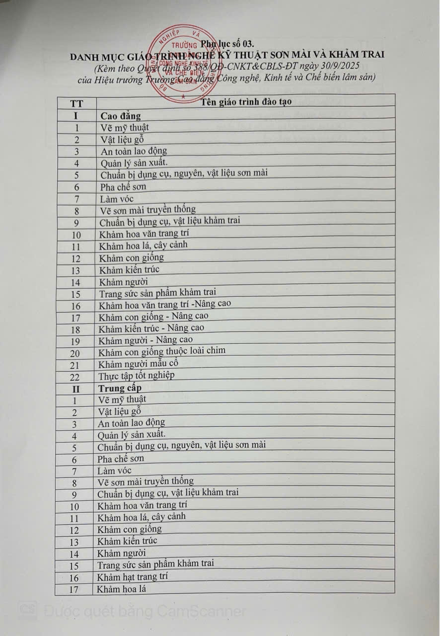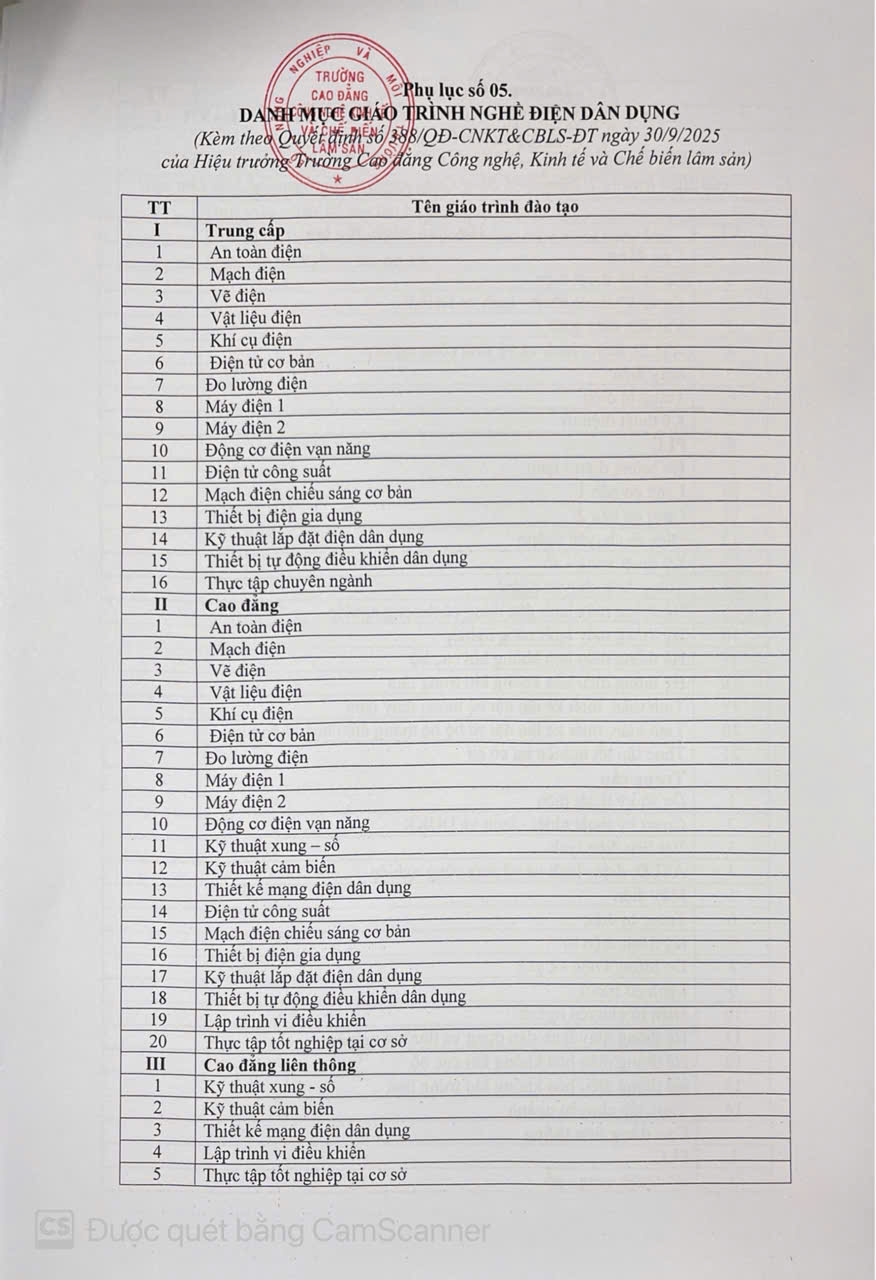 Quyết định sử dụng chương trình đào tạo trình độ trung cấp, cao đẳng và cao đẳng liên thông năm 2025