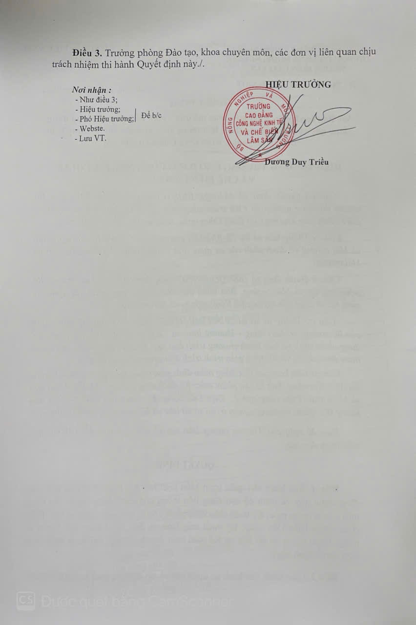 Căn cứ Quyết định số 4330/QĐ-BNN-TCCB ngày 26/10/2017 của bộ trưởng Bộ Nông nghiệp và Phát triển nông thôn về chức năng, nhiệm vụ và cơ cấu tổ chức của Trường Cao đẳng Công nghệ, Kinh tế và Chế biến lâm sản....